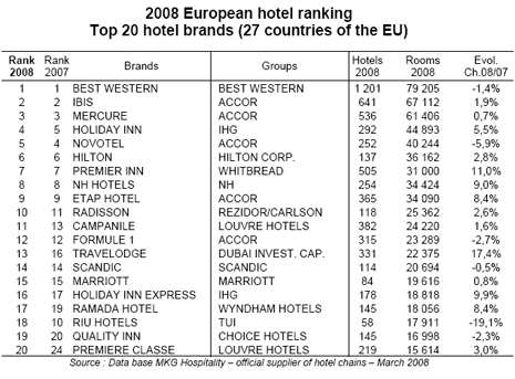 The 2008 Top 20 European Hotel Brands Ranking