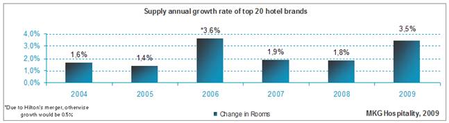 16 June 2009: The world’s top 20 chain hotel brands together saw their global room supply increase by 3.5% by the beginning of 2009.